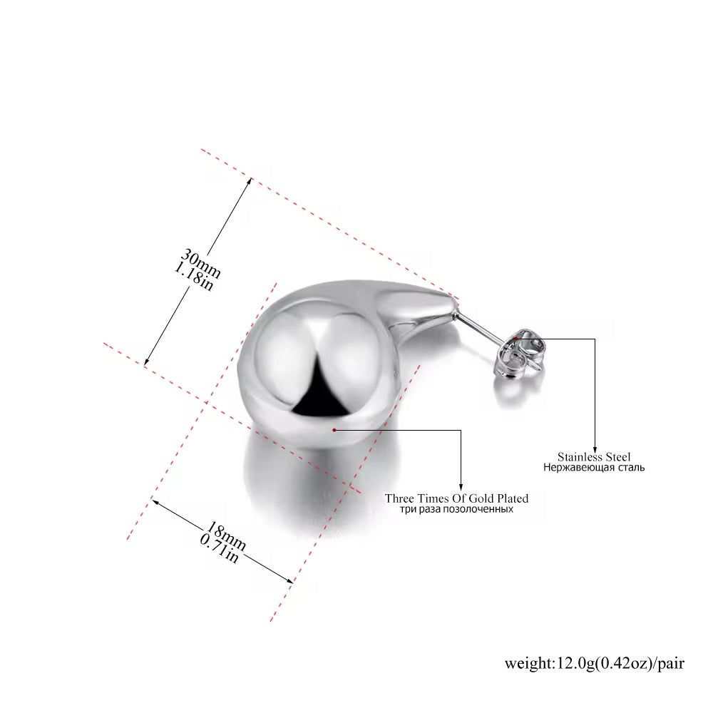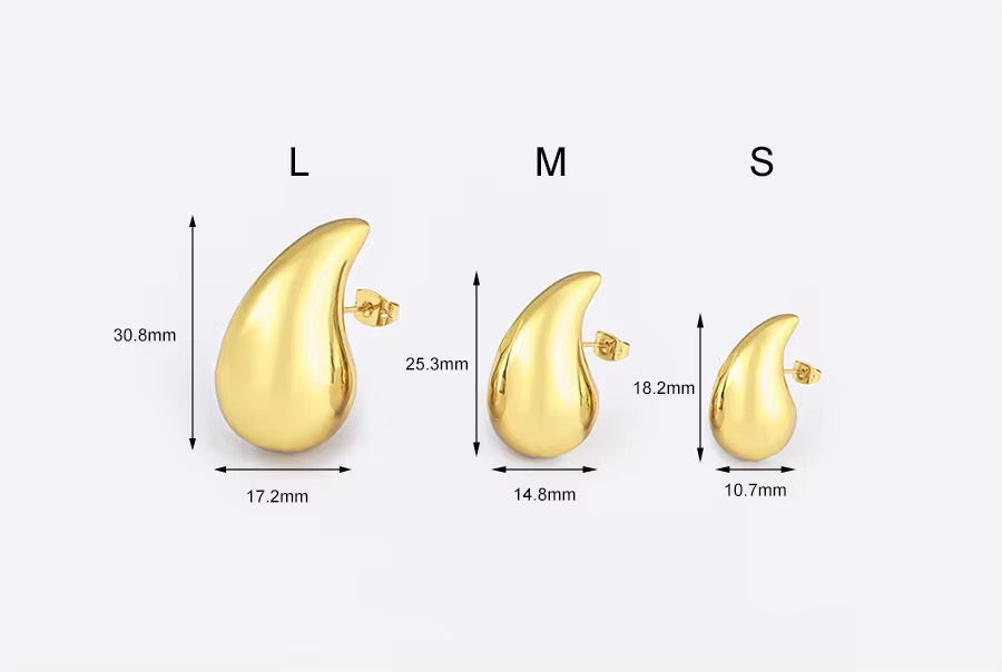 Aretes metálicos en forma de gota grande con acabado pulido de espejo. Broche de poste con mariposa.