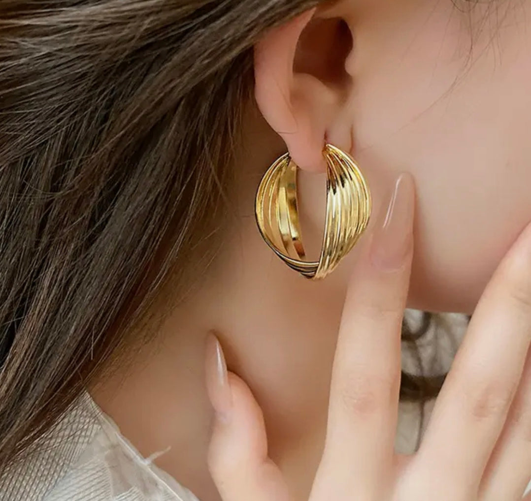 Arracadas de acero inoxidable. Diseño original disponible en color dorado y plateado.