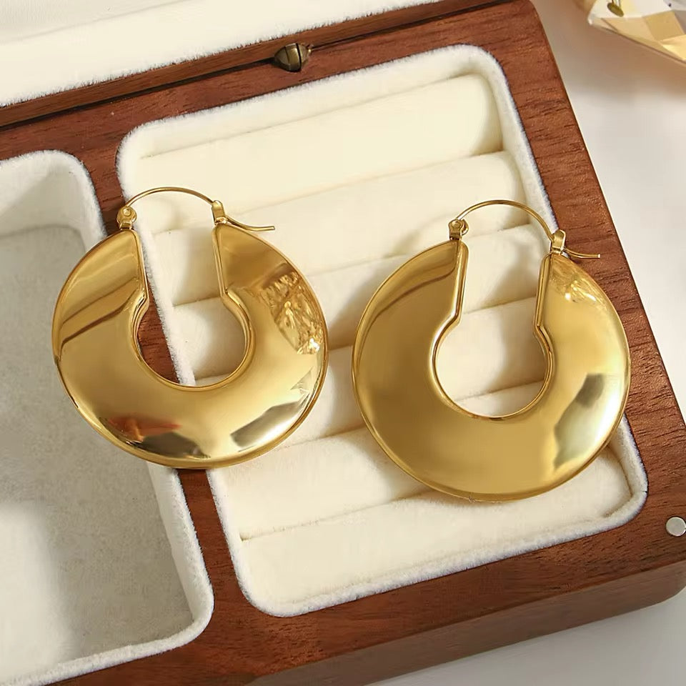 Arracadas grandes planas doradas. Acero inoxidable con baño de oro.