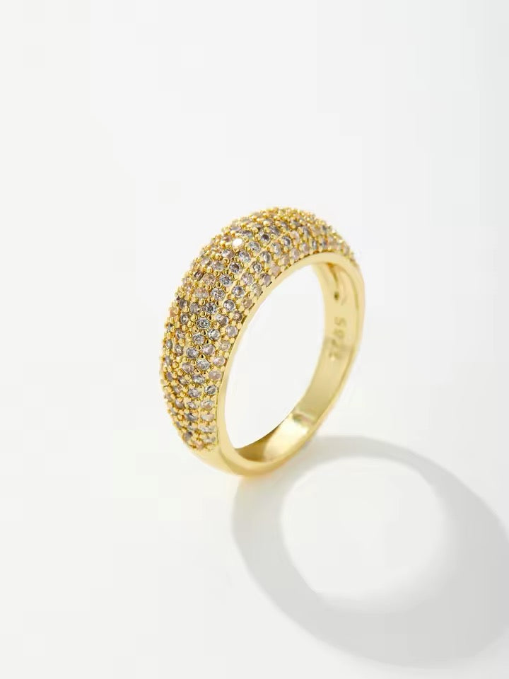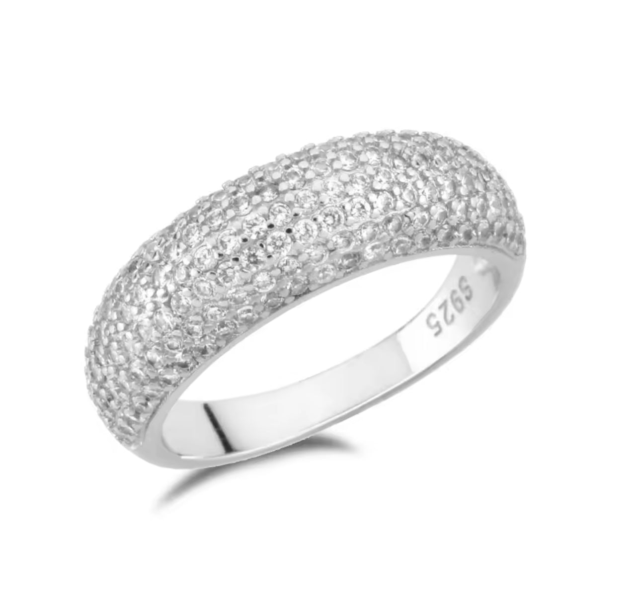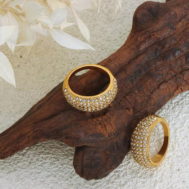 Anillo elegante de acero inoxidable cubierto de circonias.