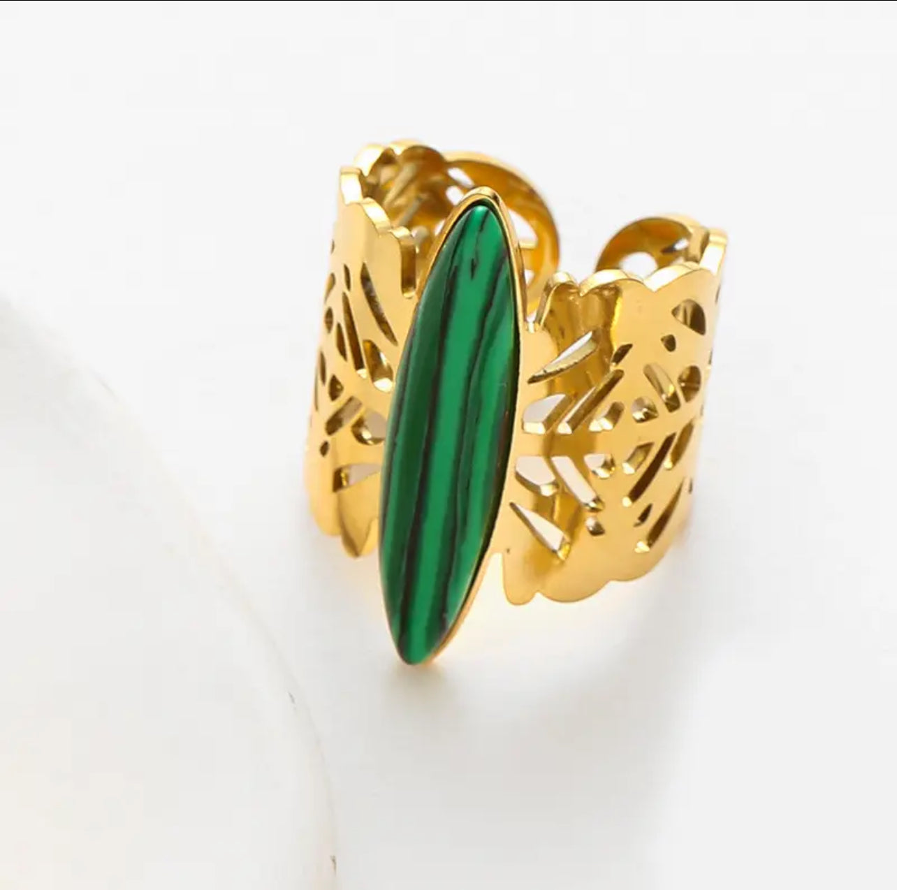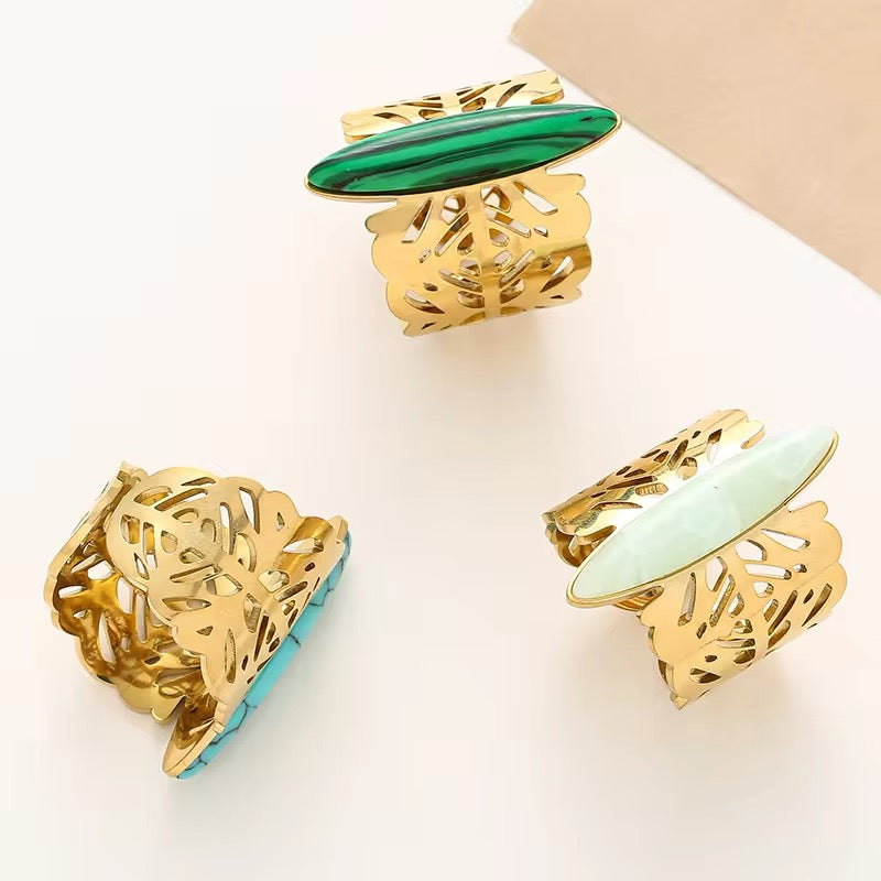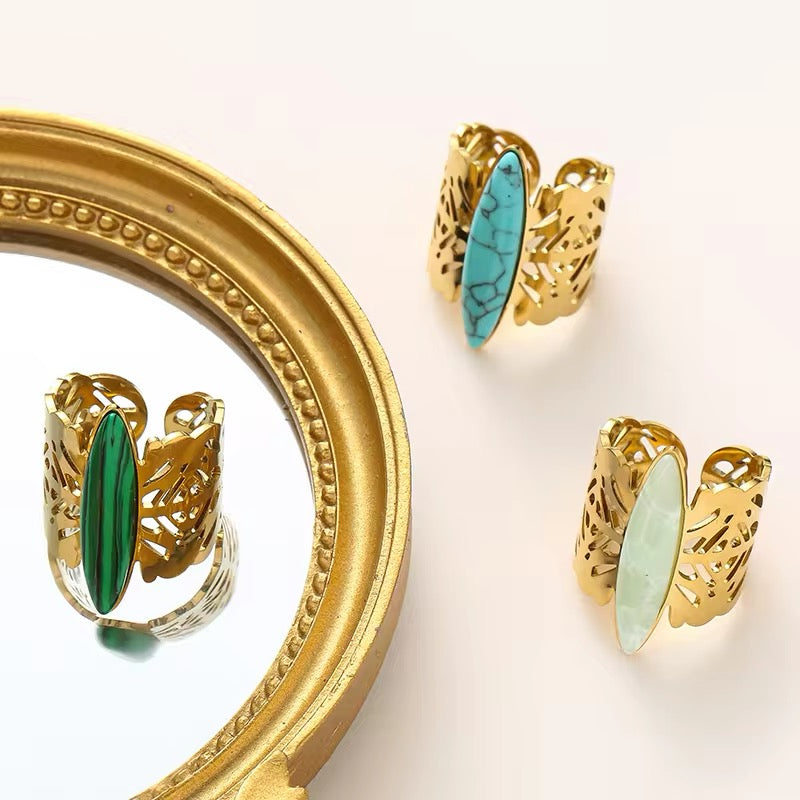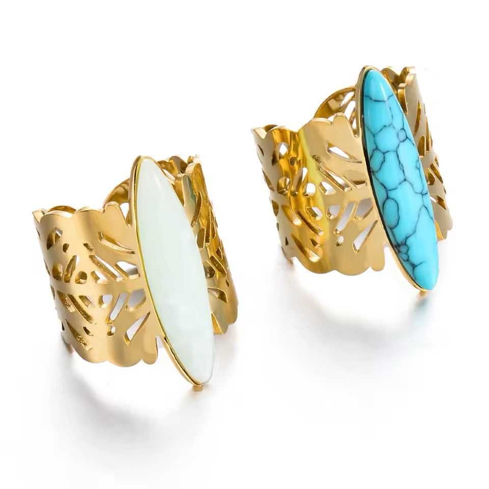 Piedra en el centro color verde, turquesa o menta.